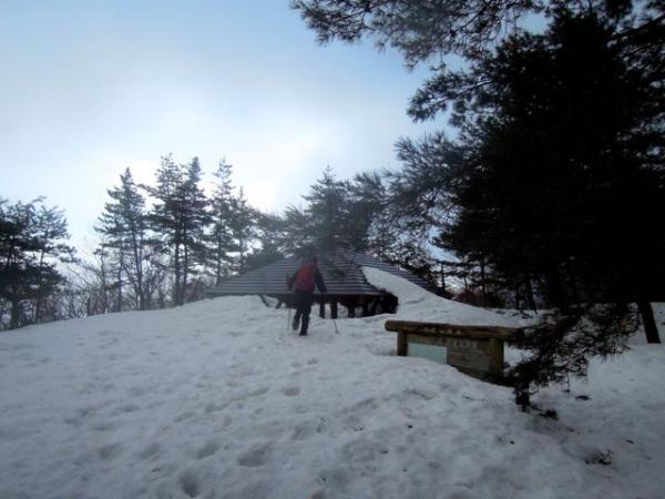 雨とも雪ともつかない何かが降り出し、赤坂山の頂上に着く頃には辺りは真っ白…やっぱり冬でした。