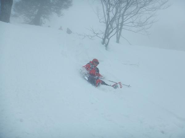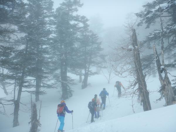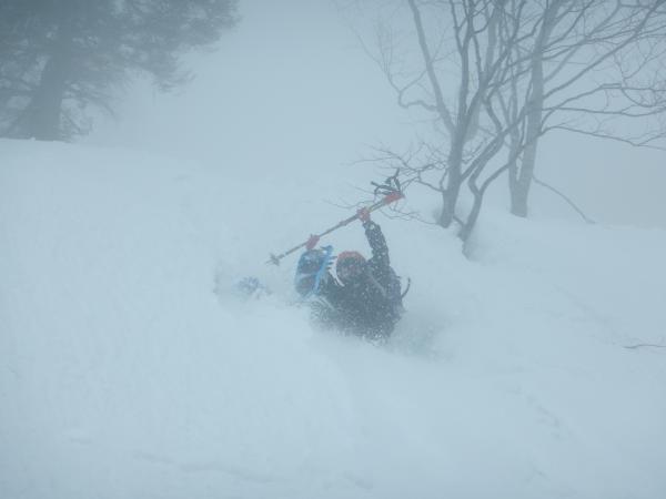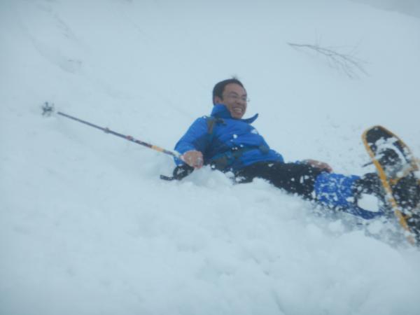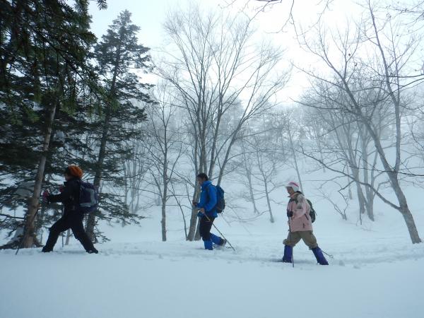 - 数日前から気温が高く重たい雪。スノーシュー、かんじき無しでは厳しいラッセルを強いられるでしょう。雪が重たく、気温が高いこともあり、午後になると雪崩にいっそうの注意が必要なコンディションでした。林道をたどるのが比較的安全ですが、林道脇の急斜面からの雪崩への注意は必要です。