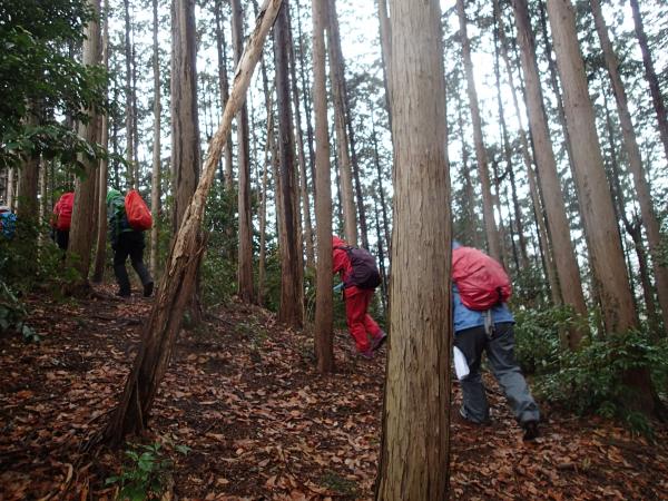 どうにか橋を渡り、地図とコンパスで目標地点を設定しながら尾根のアップダウンを歩きます。