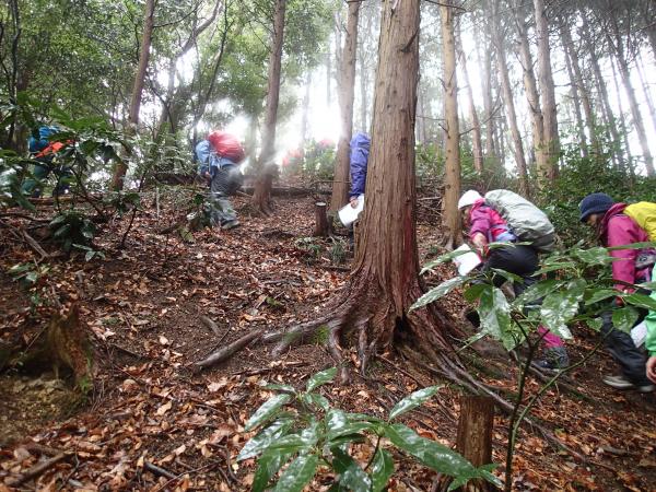 - ・バス停~421m峰の分岐までは一般登山道ではなく、道標もほぼなし。踏み跡はしっかりついており、テープやリボンのマーキングも所々あります。