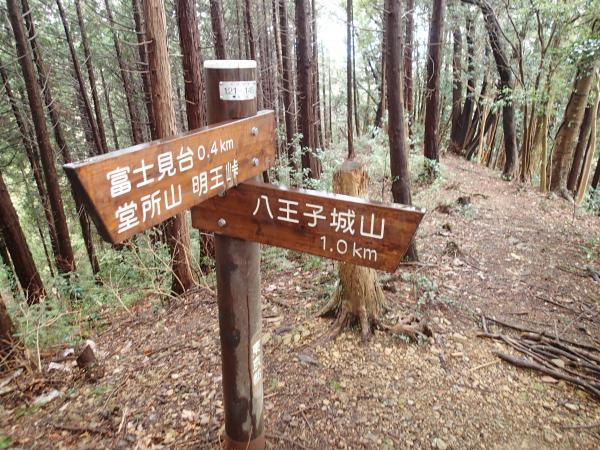 - 宮の前バス停-(40分)-中宿橋-(180分)-421m峰-(20分)-富士見台-(60分)-八王子城跡-(50分)-霊園前バス停