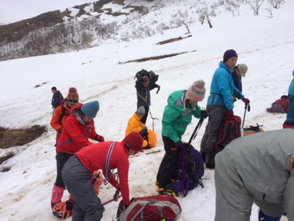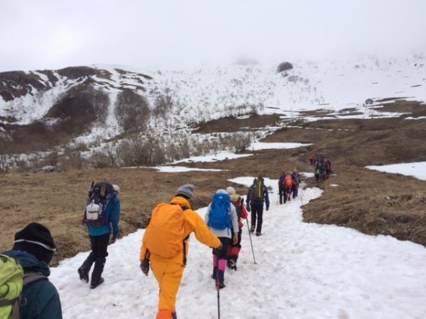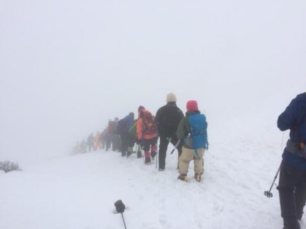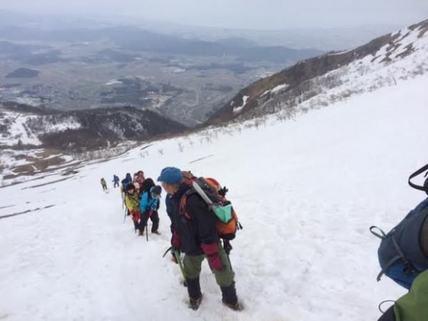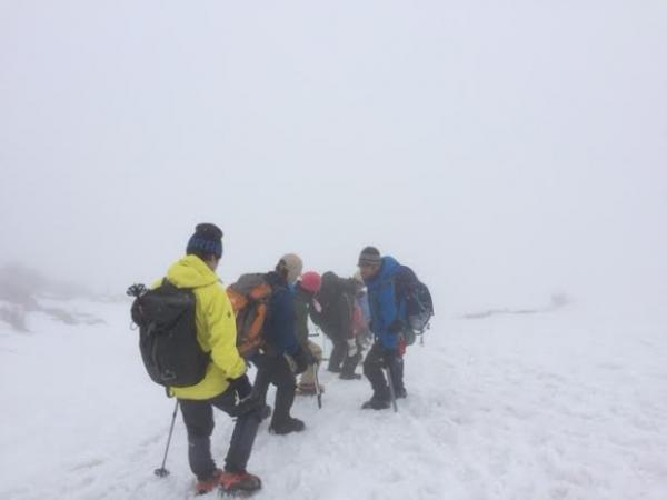 良い条件ではありませんでしたが、アイゼンの使用法などいろいろな体験をして頂くことができたと思います。私自身とっても実りある山行になりました。