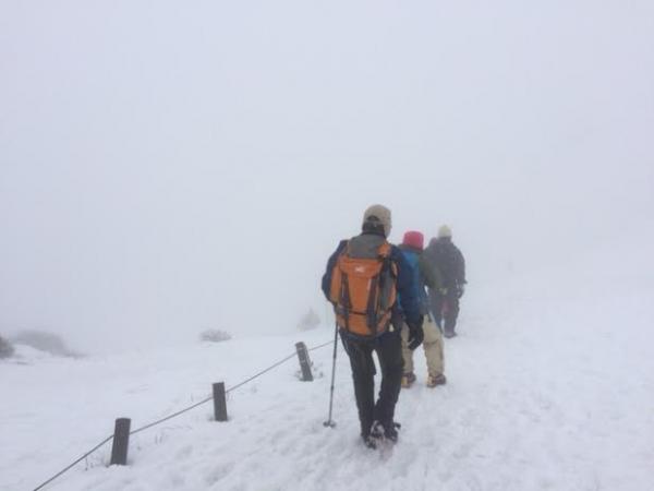 4合目までは雪もなく、冬靴で歩くのには少しきついところもありましたが、5合目からは雪もあり、雪山らしくなりました。
