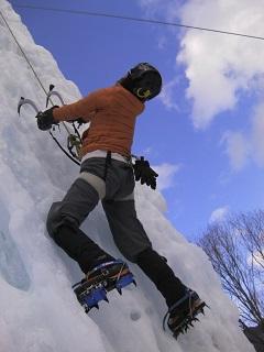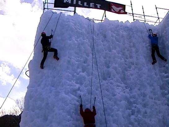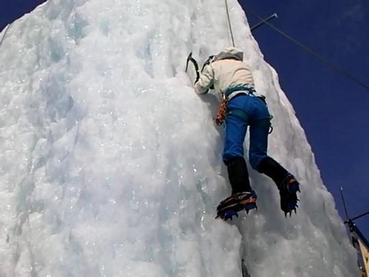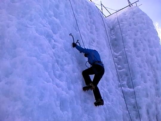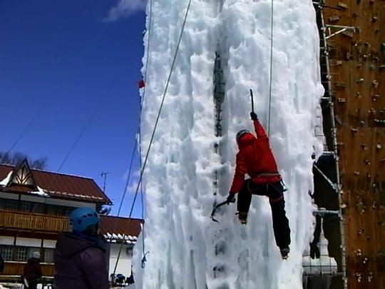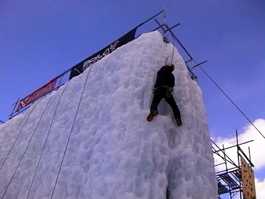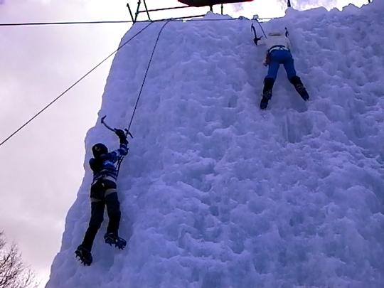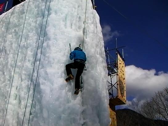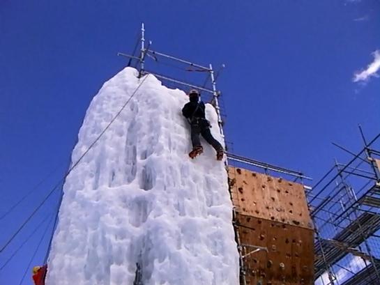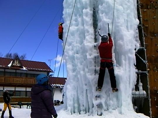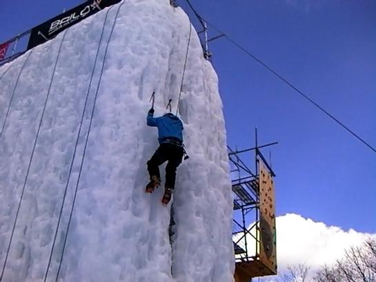 人工の氷壁とはいえ、なかなか登り応え有りです