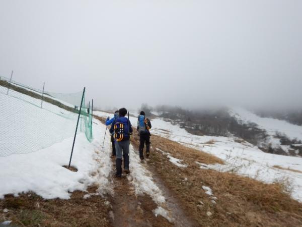 雪が柔らかくなると滑りやすいので山頂からの下りはご注意下さい。