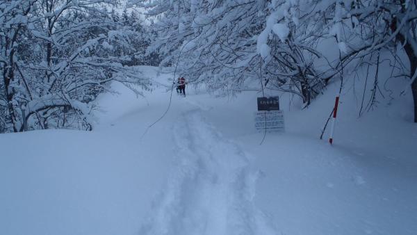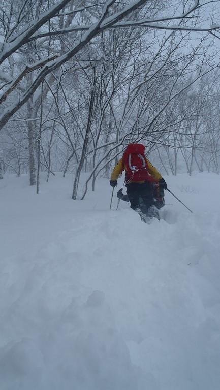 数日前から降雪が続いているようでスノーシューでも斜面によっては腰位のラッセルがありました。