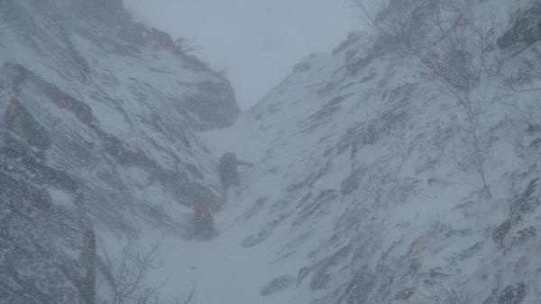 猛烈な風雪により、取り付いた枝中さんたちも2ピッチ目を登ったのみで懸垂下降で戻ってきました。本日は悪天と大量のラッセルにより目標のルートは登れませんでしたが、定天には魅力的なアルパインルートがたくさんあります。また近々再訪したいと思います。