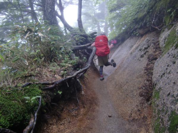- 中房温泉登山口から燕岳小屋まで、雨だったので、地面は湿ってる状態でした。