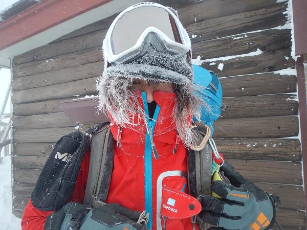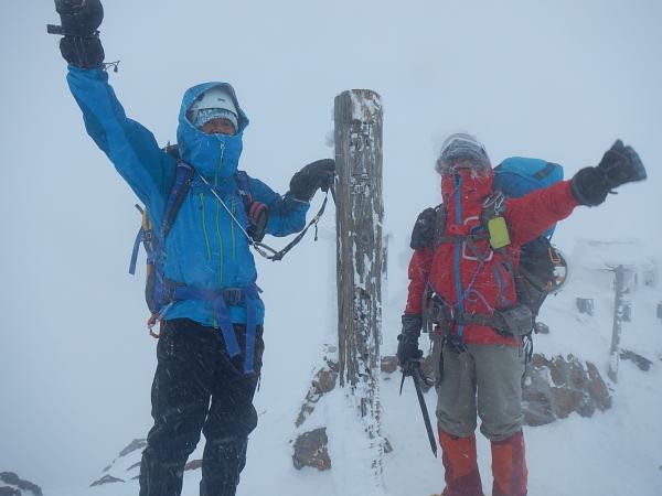 赤岳天望荘を過ぎてから風が強くなり、ゴーグル装着。コンパスを確かめながら時間をかけ赤岳山頂に到着。帰路を一瞬迷いましたが視界が悪くなってきたのでGPSの軌跡を頼りに来た道をピストンで下山することにしました。稜線は強風でしたが地蔵尾根の樹林帯が近づくと穏やかになりフカフカ雪の快適な下山となりました。赤岳鉱泉に到着しホット一息(というかかなりダラダラ)。そしてこの日の夕食は鳥鍋!いやー幸せです!!
