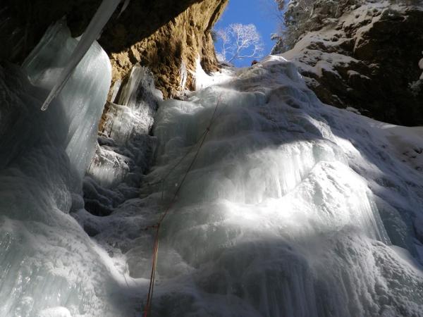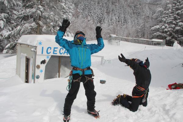 最終日は赤岳鉱泉横のアイスキャンディでアイスクライミングの練習。(使用料は一日1000円。バイル・アイゼンは有料レンタル可。ロープ含めその他のギアは各自持参してください)昼前までひとしきり楽しんだ後、美濃戸口へ下山しました。両腕はパンパンに筋肉痛です。
