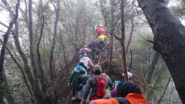 尾根に出て、道に傾斜があるとそれだけで滑落注意。