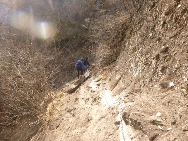 石門広場から先、いよいよクサリ場が出てきます。第二石門のクサリ場は下から見上げると