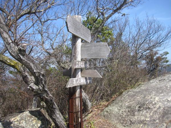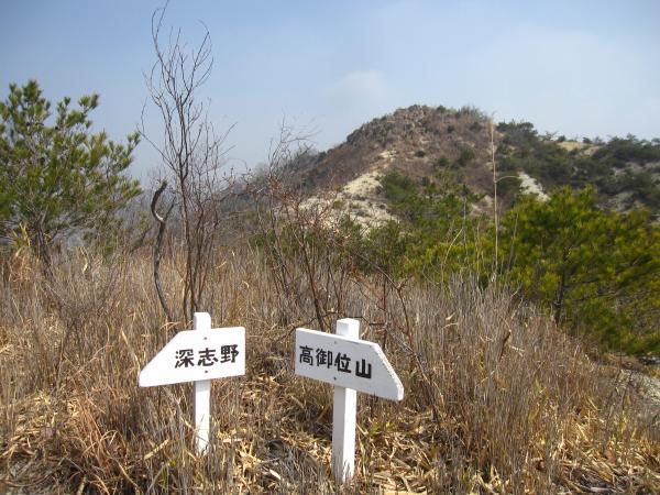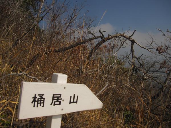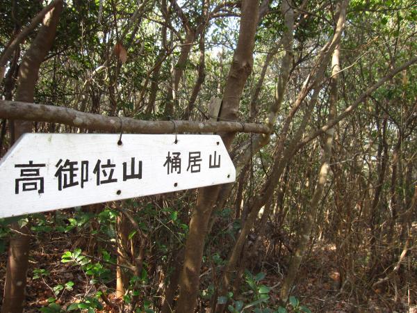 馬の背から登り、高御位の山頂方向へ少し進むと、桶居山への分岐です(看板有)。