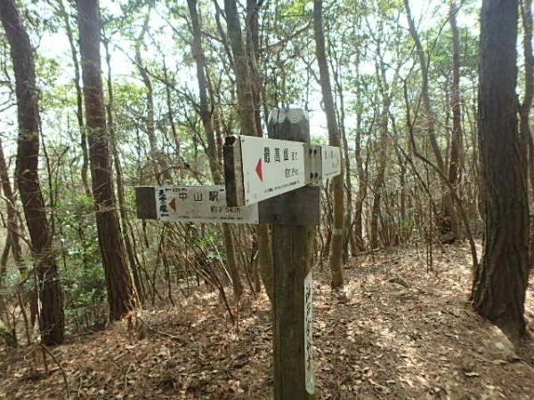 - 中山寺(80分天宮塚経由)中山最高峰(30分)ダム(15分道路)大峰山入口(40分)大峰山(45分)桜の園入口(30分)武田尾駅