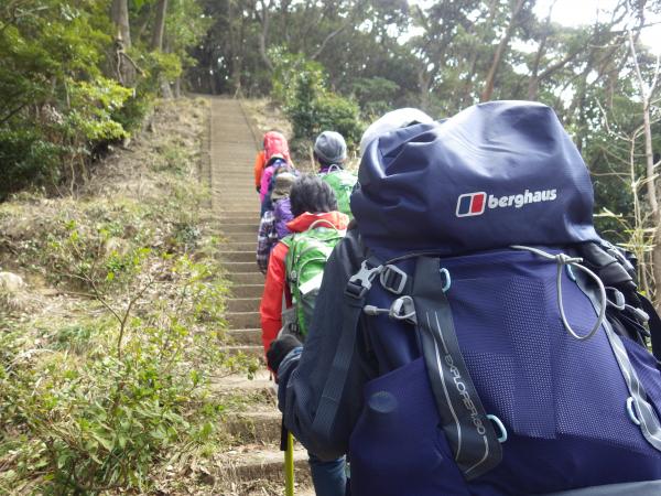 - 山頂までの道は急な階段が続きます。登りも下りもゆっくりと慎重に!