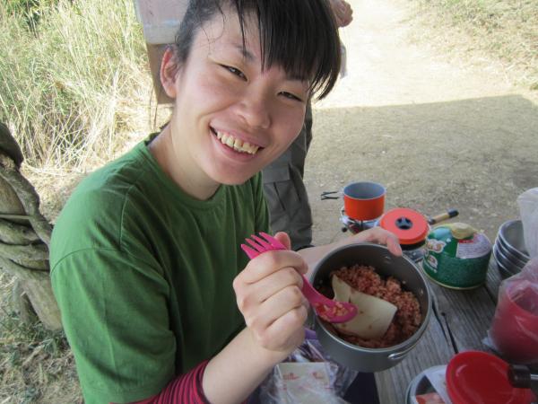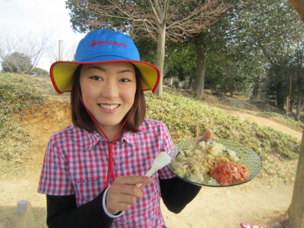 渡部 サツマイモのフライパン焼き、マイタケ味噌汁、ブロツコリーサラダ。