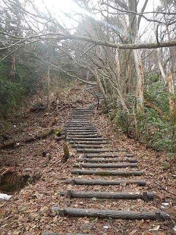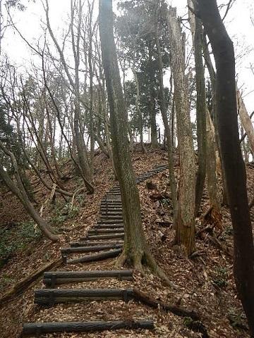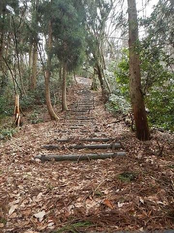 山道途中には急登に真っ直ぐのびた人工木の階段(キツイなあ‥‥)が数ヵ所整備されています。