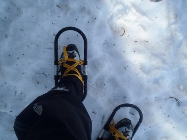 ツボ足だと沈み込みが3~40㎝あるのでワカンを装着。
