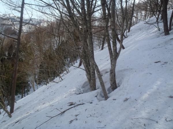 トレースは明確ですが、所々木の根元付近に深い箇所があるので注意です。