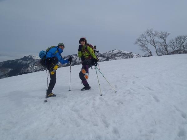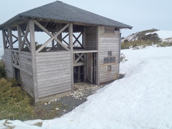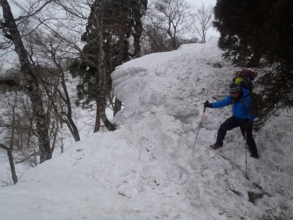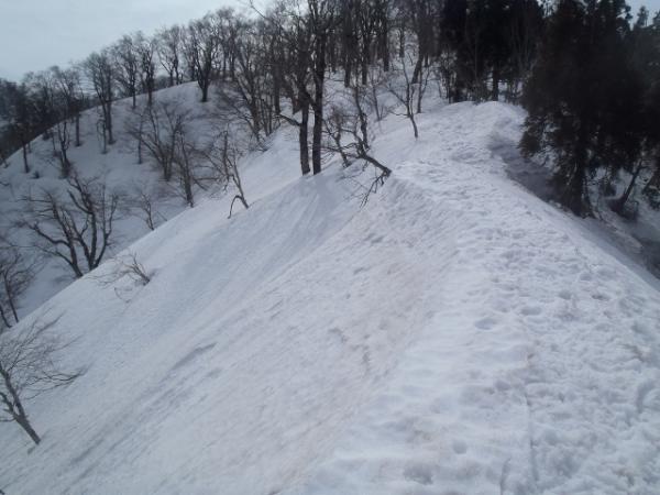 下りは来た道をピストンしましたが、重い雪なのでアイゼンに履き替えたほうが無難です。