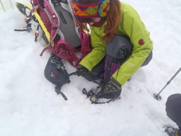 ここからは雪も良く締まっていたのでアイゼンを装着しました。