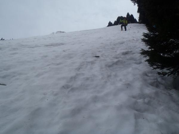 樹氷第3チャレンジリフト終点から、急な登りが続きます。