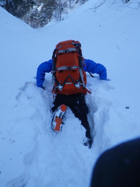 行った日は誰も入っておらず、雪も深かったため、腰~胸ラッセル。時間がかかりました。