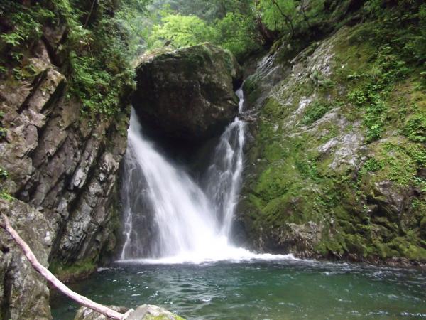 - 与左衛門林道ゲート(6:30)==入渓(7:00)==開門の滝(8:00)==回廊の滝(10:00)==ツガ谷==孫八谷==真保橋(16:30)==兵衛林道==ゲート(19:50)