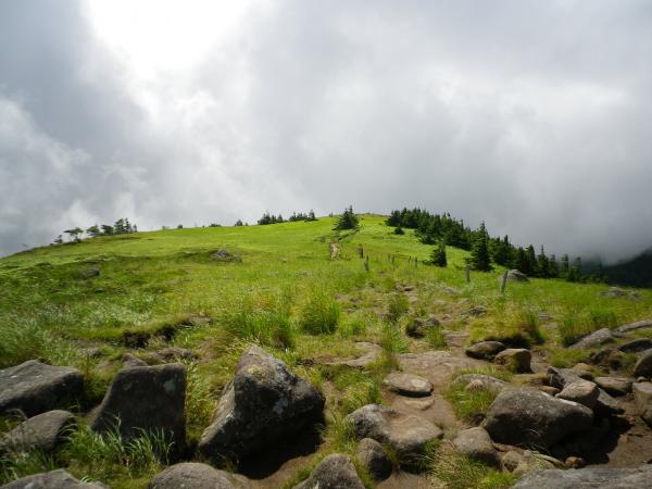 笹だらけの道で笹が身体を直撃したり、大きな岩を渡ったり、雨が降って滑りそうになったり…。