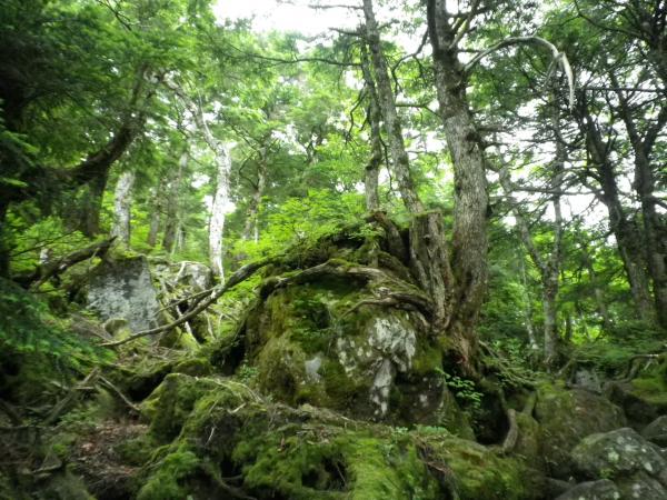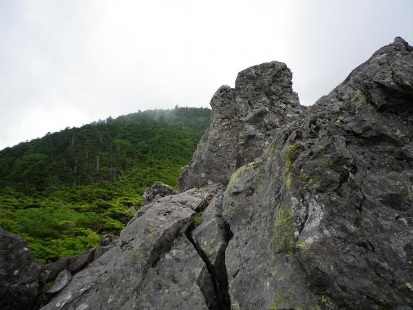双子池から大岳頂上への道には大きな岩の上を上がったり下がったりするところが連続してあります。