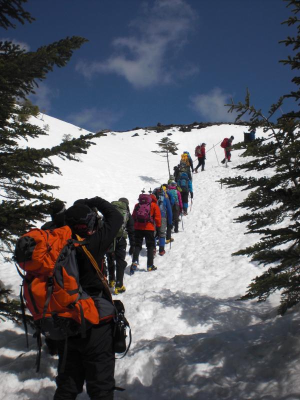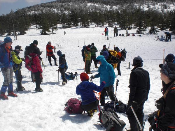 ららぽーと横浜店・横浜西口店合同企画の登山学校で北八ヶ岳の三ツ岳へアイゼン・ピッケルを使った雪山での実技講座を行いました。