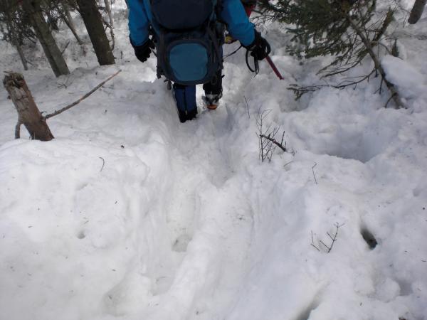 樹林帯を通りますが、木の根元は踏み抜き箇所が多く、歩行が困難な場所があります。