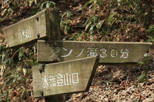 - 水無登山口(45分)沢を渡り急な登りの手前(30分)水無登山口