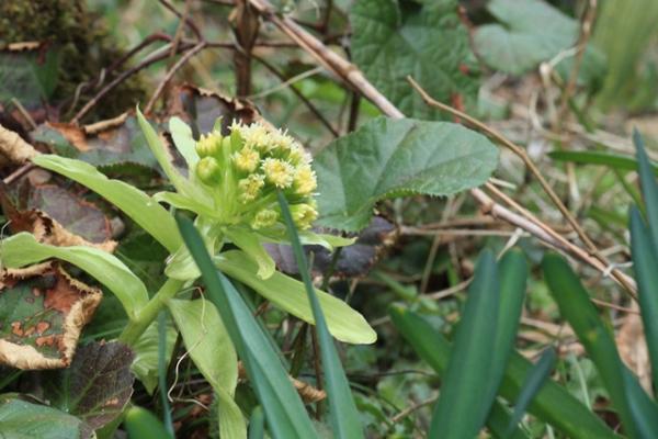 ホソバナコバイモがたくさん咲いていました。フキノトウはすでに大きく花開いていました。