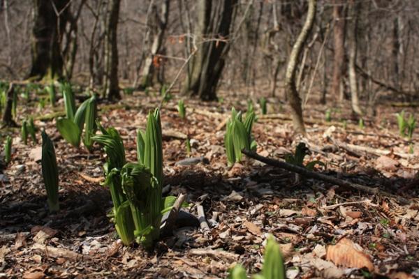 バイケイソウの葉が勢いよく出だしていました。春ならではの光景です。