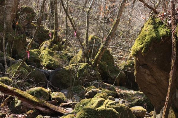 原生林の中、苔むした景色が広がり気持ちよく歩けました。