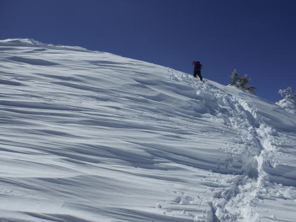・所々雪が深く膝まで潜る場所もあるのでワカンがあると歩きやすいです。