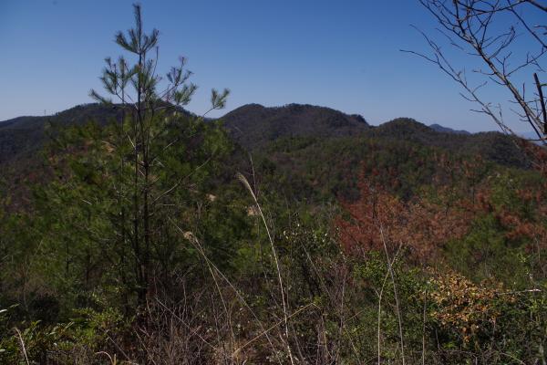 - 桃太郎神社P大平山・せせらぎルート(120分)西山(50分)鳩吹山(45分)桶ヶ洞分岐・栗栖林道(105分)桃太郎神社