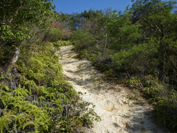 ⑤小屋谷山から西ハイキングコースの後半はやせ尾根気味の尾根を下ります