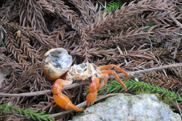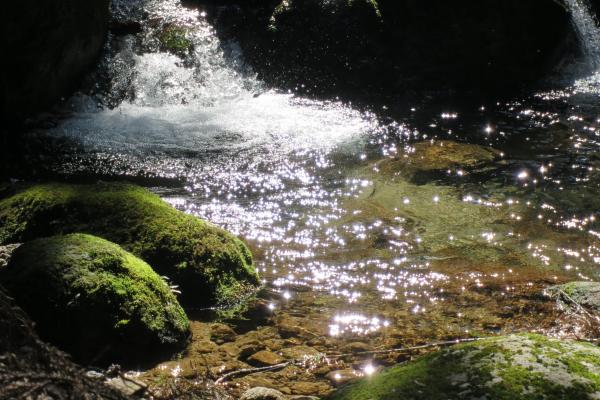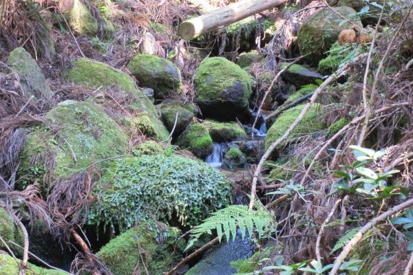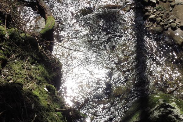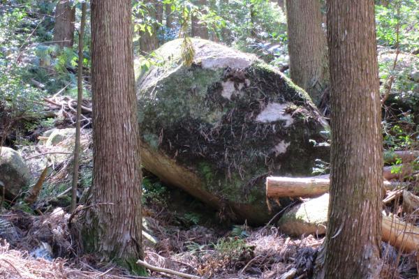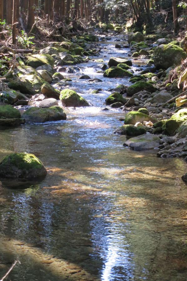 登山道がついている桑ノ木谷は熊野川支流随一の清流といわれる高田川に注ぐ沢がながれていて、稜線にでるまでは徒渉を繰り返し、野鳥のさえずりと沢のせせらぎを聞きながら、苔むす豊かな緑のなかを歩きました。小笠丸山から見えた太平洋はとても広く大きく、丸みを帯びた水平線が印象的でした。
