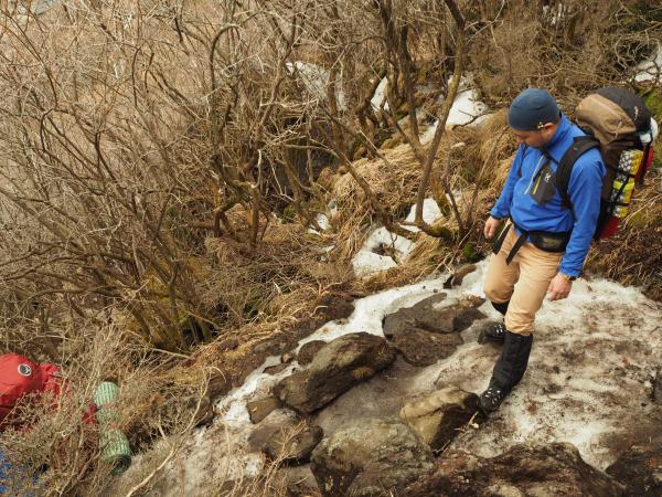 - 長者原から諏峨守小屋間、土道はぬかるみ状態。三俣山、基本的にぬかるみ状態。石に乗ると沈むほど柔らかい。特に下山時は慎重に。法華院に下りはじめは残雪有り。不安な方は6本を用意。