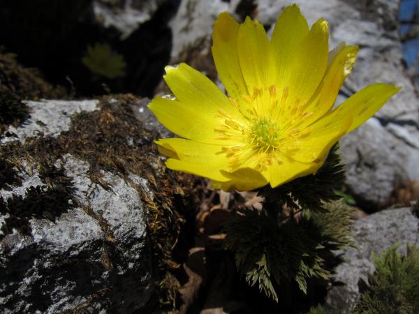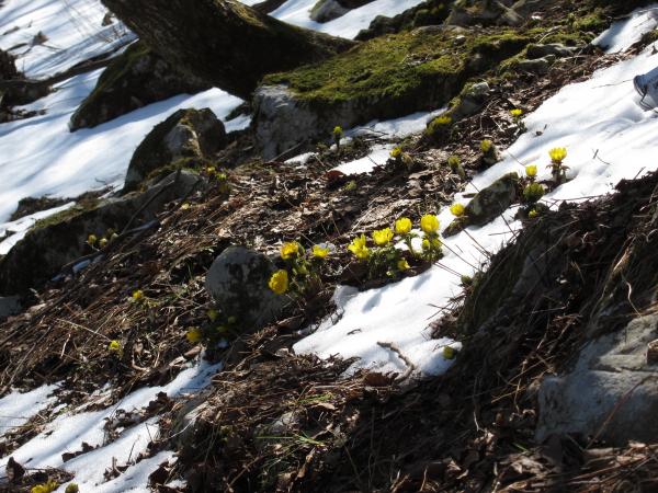 お目当ての福寿草は九合目ぐらいでたくさん咲いており、みなさん写真撮影を楽しんでおられました。