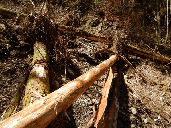 昨年の大雪の影響で倒木や崖崩れが多く、行く手を阻みます。