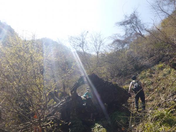 ○[梅の木尾根~弁天御髪尾根]比較的歩きやすい尾根です。所々、眺めの良い場所があります。山桜を何本か見ることができました。