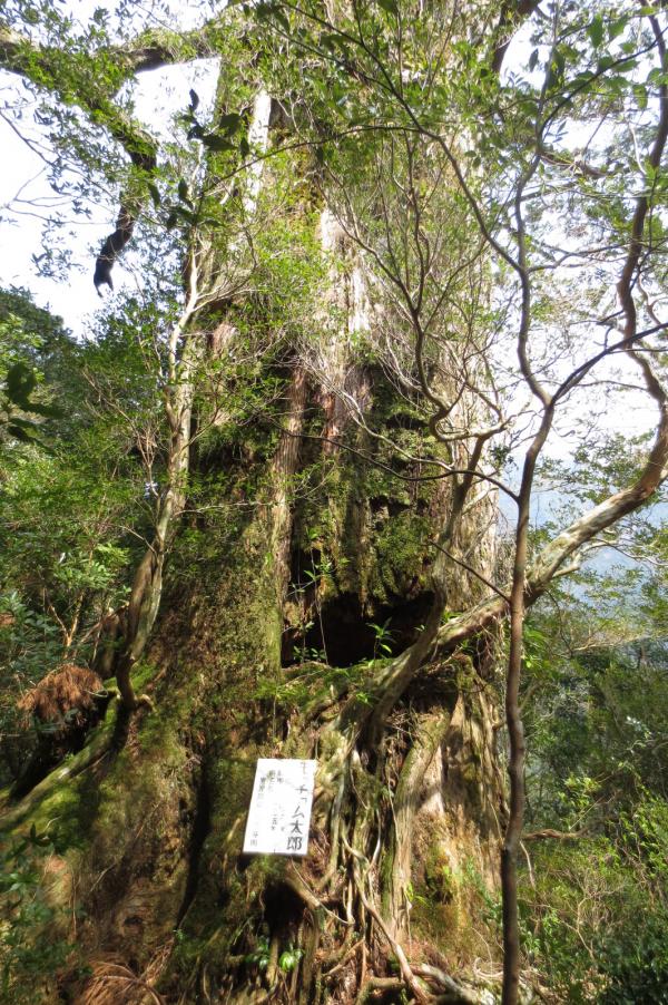 万代杉は枝振りよく元気。そこからしばらく進むと、「モッチョム太郎」の矢印がありました。