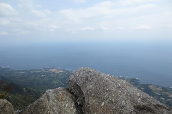 たどり着くと大きな岩が二つ重なっているようで、ロープもあり、足場もしっかりしていたのでよじ登りました。海が見渡せていい景色!