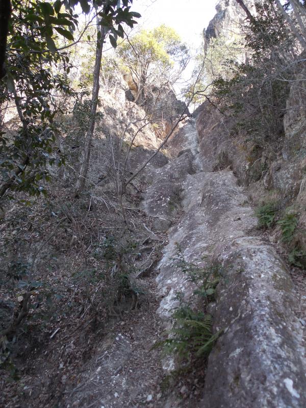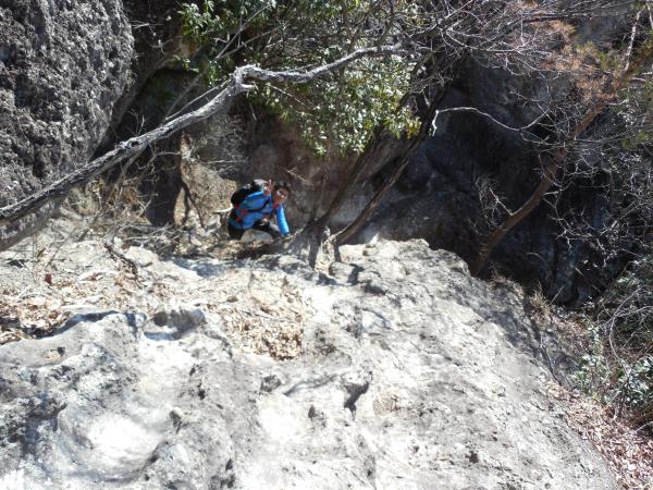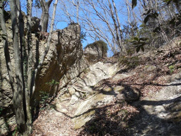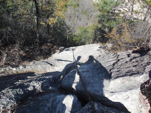 日吉神社に車を停めて出発。同じ頃に出発するグループも最後の猿岩の下降を楽しみにしているようです。神社脇のハイキングコース入口から樹林の中を歩くとほどなく岩場歩きが始まります。岩場歩きの練習にはもってこいの山です。