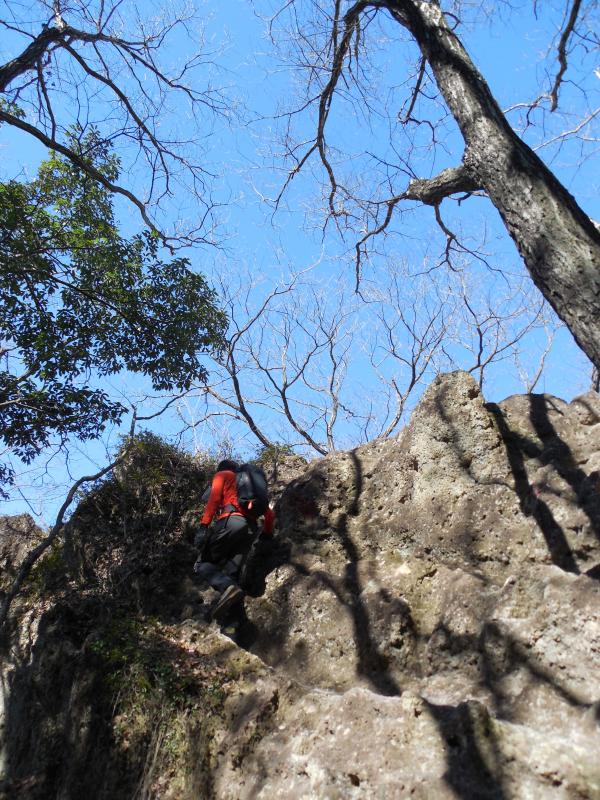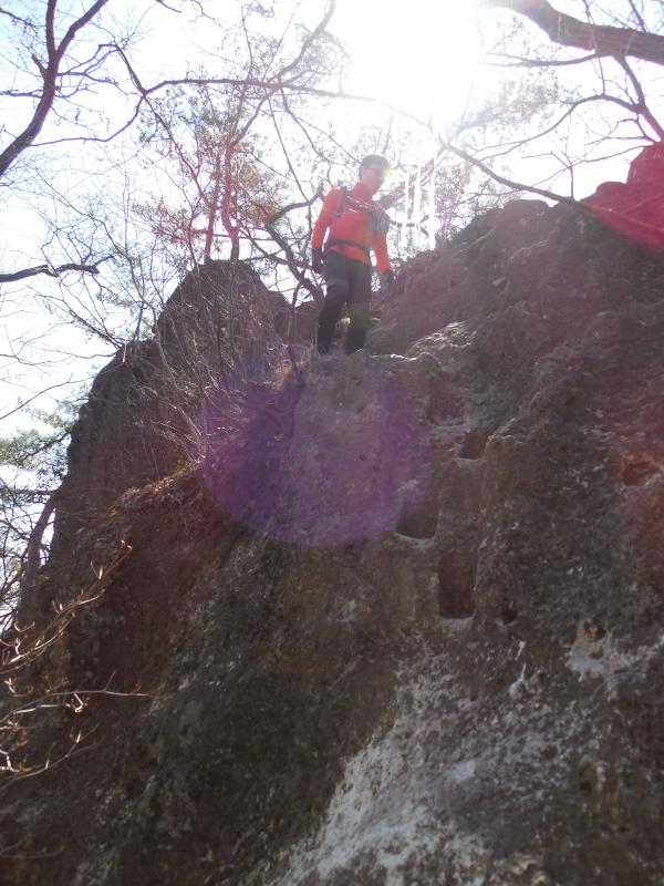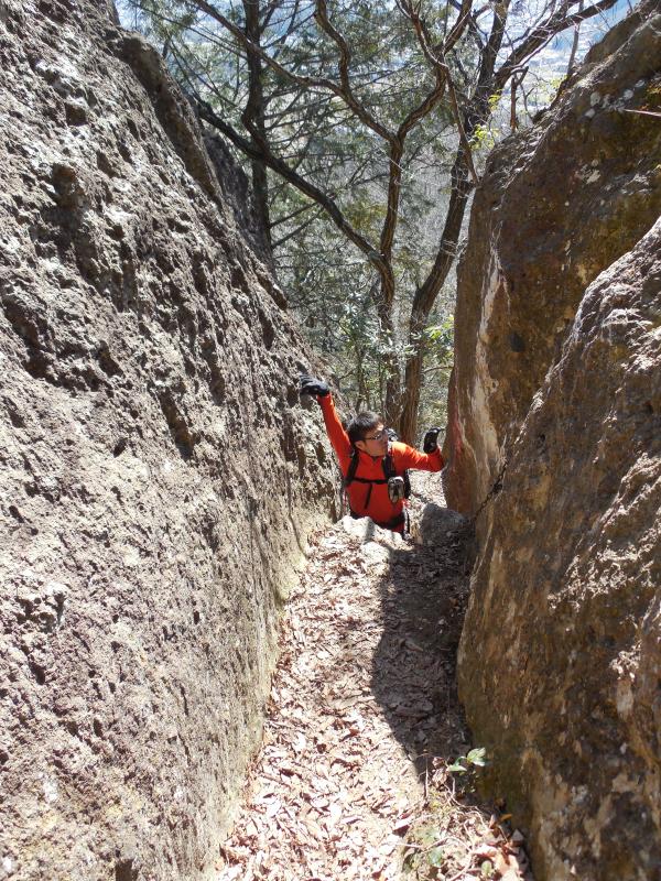 - 稜線上を歩きますが、大きな岩をよじ登ったり下りたり、岩の隙間を通過したりします。