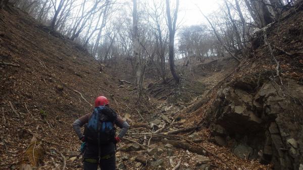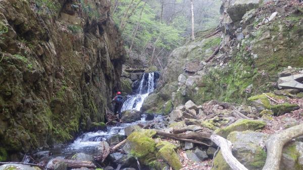 小滝をちらほら超えて、1300m二俣を右股に進んで、あとは尾根までひたすら急登を登ります。