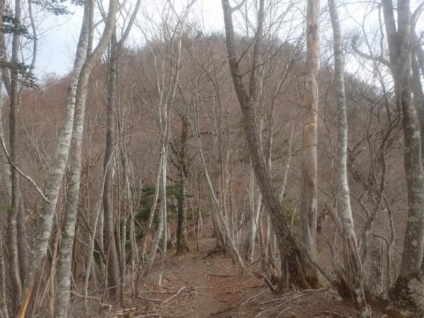 藪漕ぎは全くなく鷹ノ巣山山頂手前の登山道に合流。